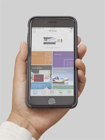 Descarga la aplicación Hp Smart en tu dispositivo móvil para que puedas realizar todas las operaciones desde el propio celular remotamente, sin tener la necesidad de acercarte físicamente a la impresora para realizar las tareas.